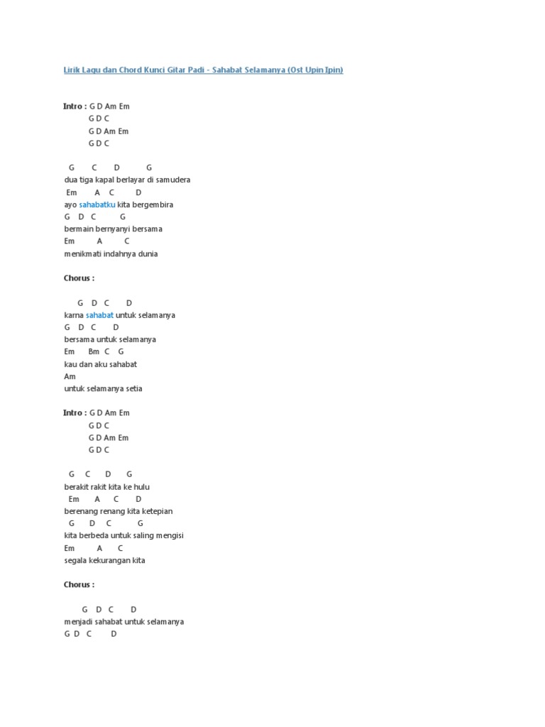 Berlatar belakang kebudayaan malaysia, upin ipin merupakan kartun yang syarat dalam penyampaian pesannya, upin ipin juga kerap menambahkan lagu di dalamnya. Padi bikin lagu untuk film seri animasi anak upin & ipin. C g/b am d sambil menulis lirik untuk lagu pop g d/f# em d bilangnya begini maksudnya begitu. Itulah kunci gitar ungu dengan lagunya. Kumpulan lagu upin dan ipin pake gitar akustik fizi ga ada akhlak. G d c d karna sahabat untuk selamanya g d c d bersama untuk selamanya em bm c g kau dan aku sahabat am untuk. Chord kunci gitar laoneis band ayah mudah buat pemula youtube. G d/f# em d berlayar ke depok di waktu pagi hari. Kunci gitar ungu dengan lagu lagu terpopuler. Google has many special features to help you find exactly what youre looking for. Untuk lirik lagunya mari lihat. Pada aplikasi ini kamu bisa menyimpannya secara offline. Kord gitar upin & ipin , kunci gitar upin & ipin , tab upin & ipin.